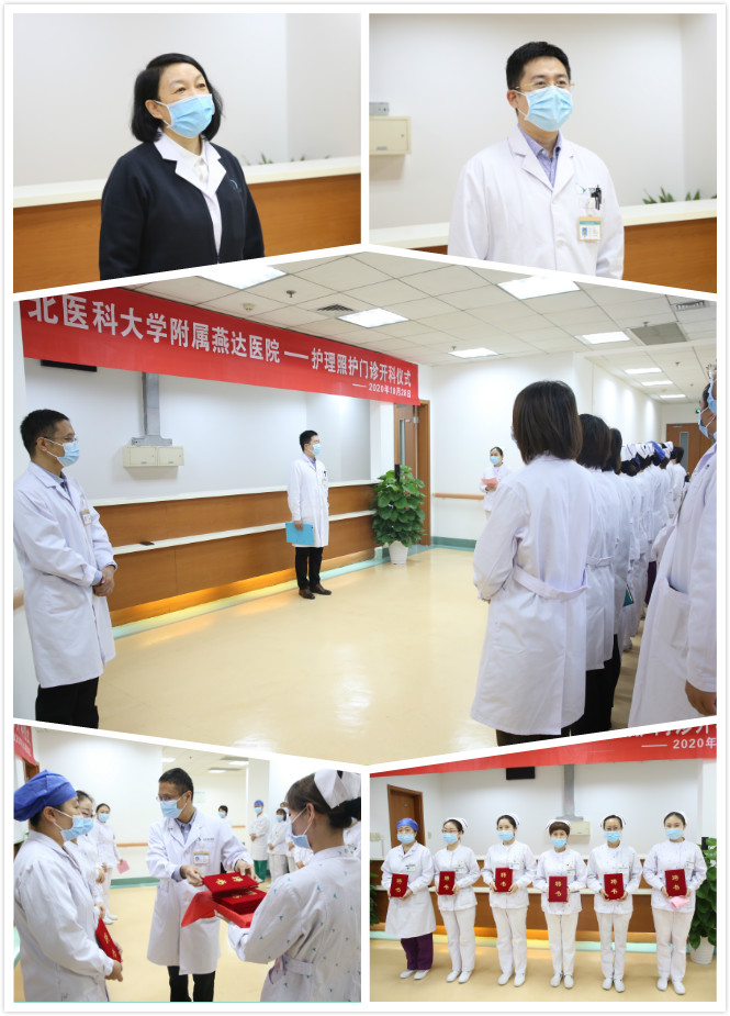 河北醫科大學附屬燕達醫院人力資源總監張立旺、醫務部主任王立等院領導,護理部主任衛冰,門診、感控、科教、醫保、院辦等部門負責人及各科室護士長、專科護士共同參加此次開診儀式。